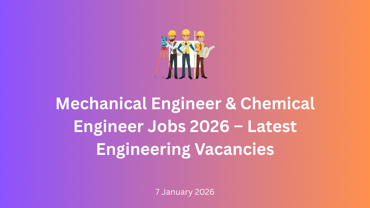 Mechanical Engineer & Chemical Engineer Jobs 2026 – Latest Engineering Vacancies